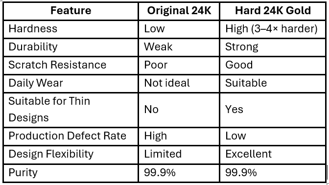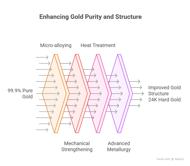 Gold that is 3–4× harder than traditional 24K, without losing purity.